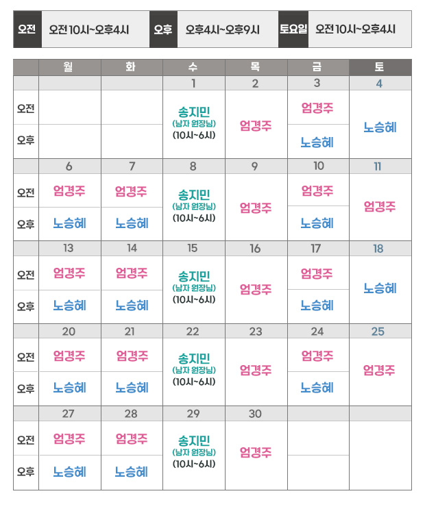 | 월/화/목/금 | 오전10시 ~ 오후9시 |