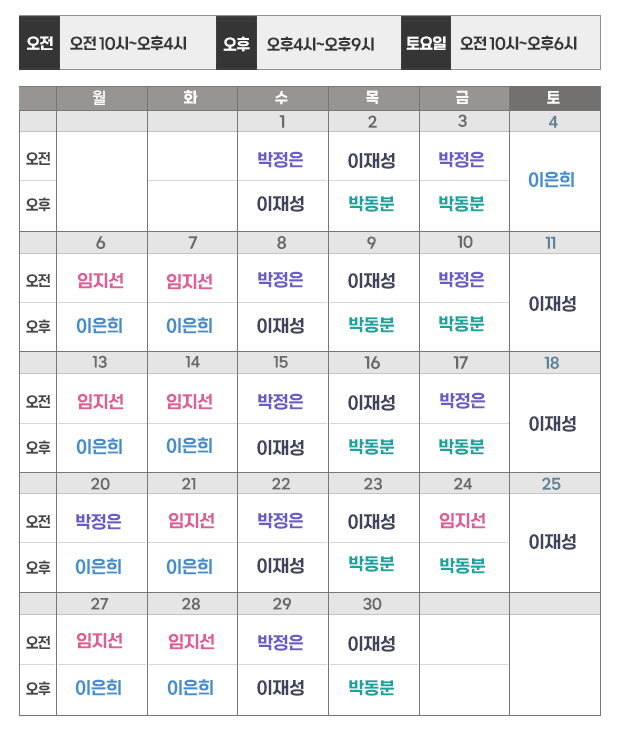 | 공휴일 | 오전9시 ~ 오후1시 |